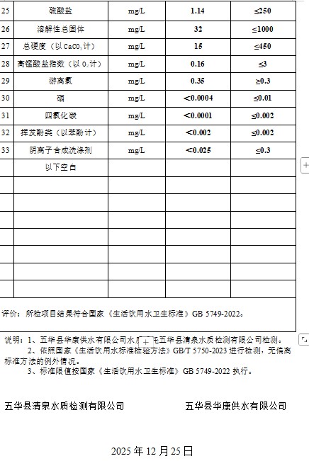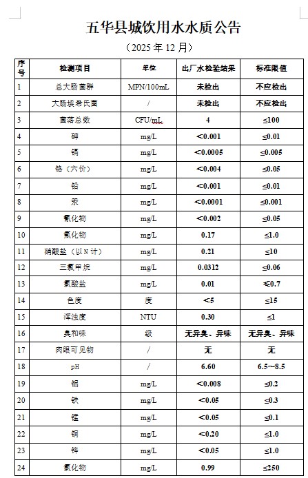 2025年12月份出厂水水质检测